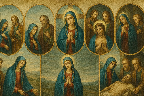 Kult Matki Bożej Bolesnej szczególnie podkreśla Siedem Boleści Maryi, które są ikoną Jej współcierpienia i miłości macierzyńskiej: