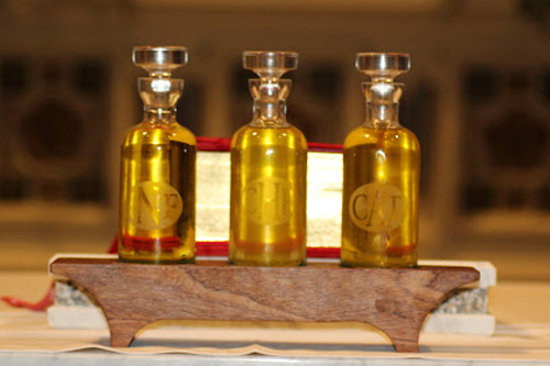 Jakie trzy oleje stosujemy podczas sakramentów?