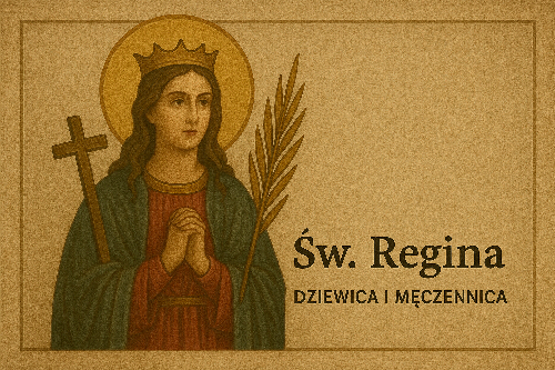 Święta Regino, pasterko o sercu prostym i niepodzielnym, uproś nam miłość, która nie cofa się przed próbą. Naucz nas wierności, gdy przychodzą presja i pokusa, czystości zamiarów i odwagi posłuszeństwa sumieniu. Niech Twoje wstawiennictwo umacnia słabych, leczy z lęku i prowadzi nas do pełni wolności w Chrystusie. Amen.Wspomnienie liturgiczne: 7 września • Patronat (zwyczajowy): wierność w pokusach, godność kobiet, czystość serca • Atrybuty: palma męczeństwa, owieczka, miecz, łańcuch.